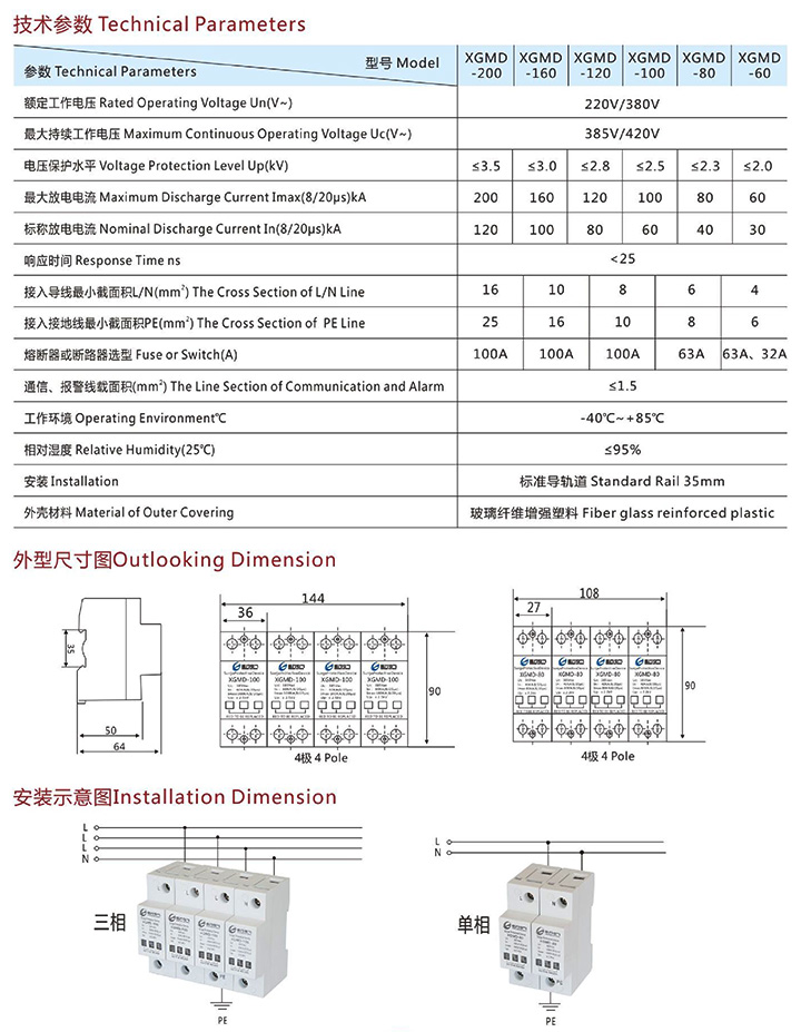 南京新光8/20波形電源電涌保護(hù)器(A系列)